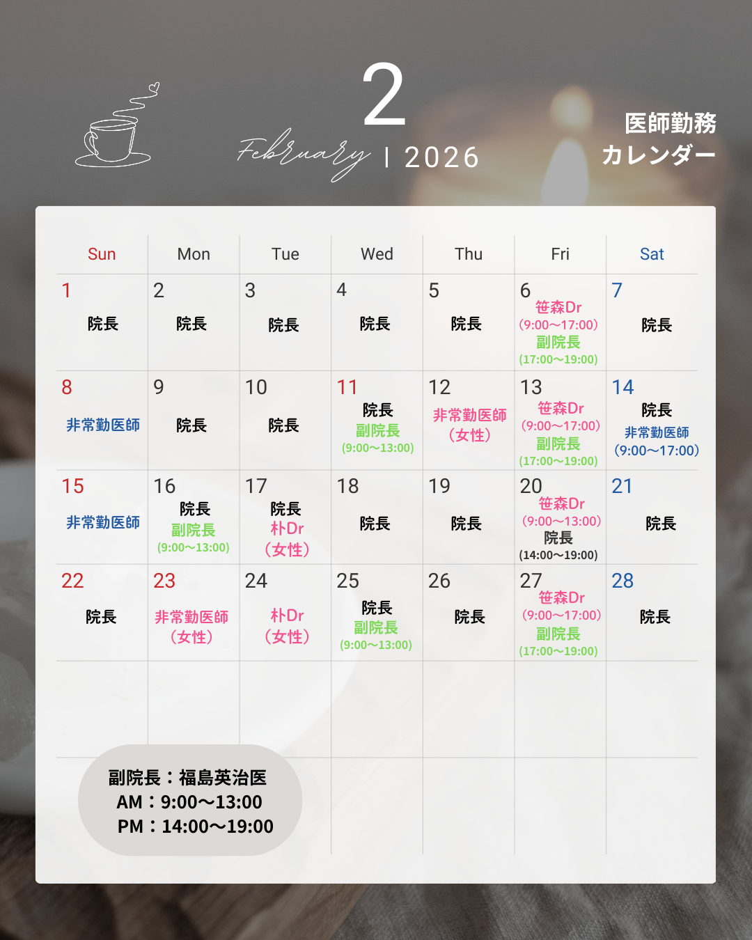 2月の診察担当医の予定をご案内いたします🗓️